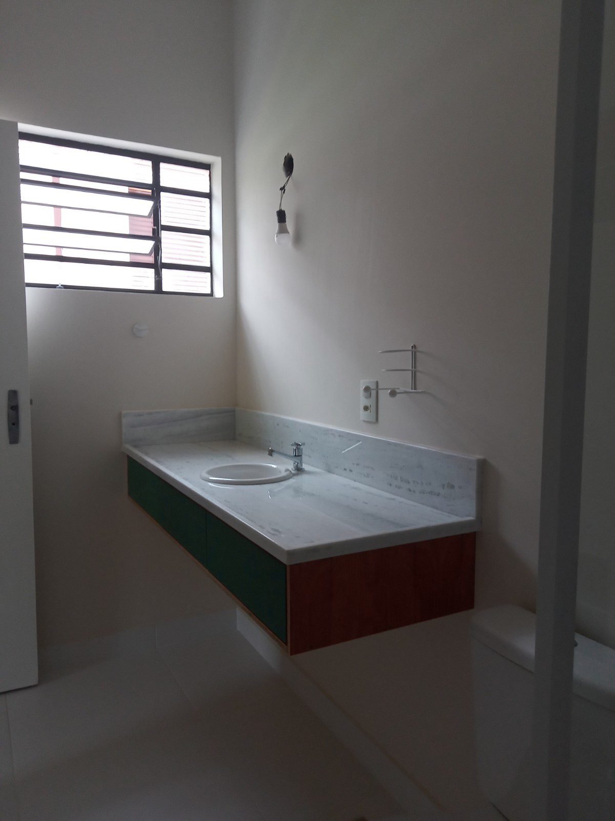 Sobre o compensado, foi colado uma peça de formica na cor verde, dando acabamento e e destaque cromático.