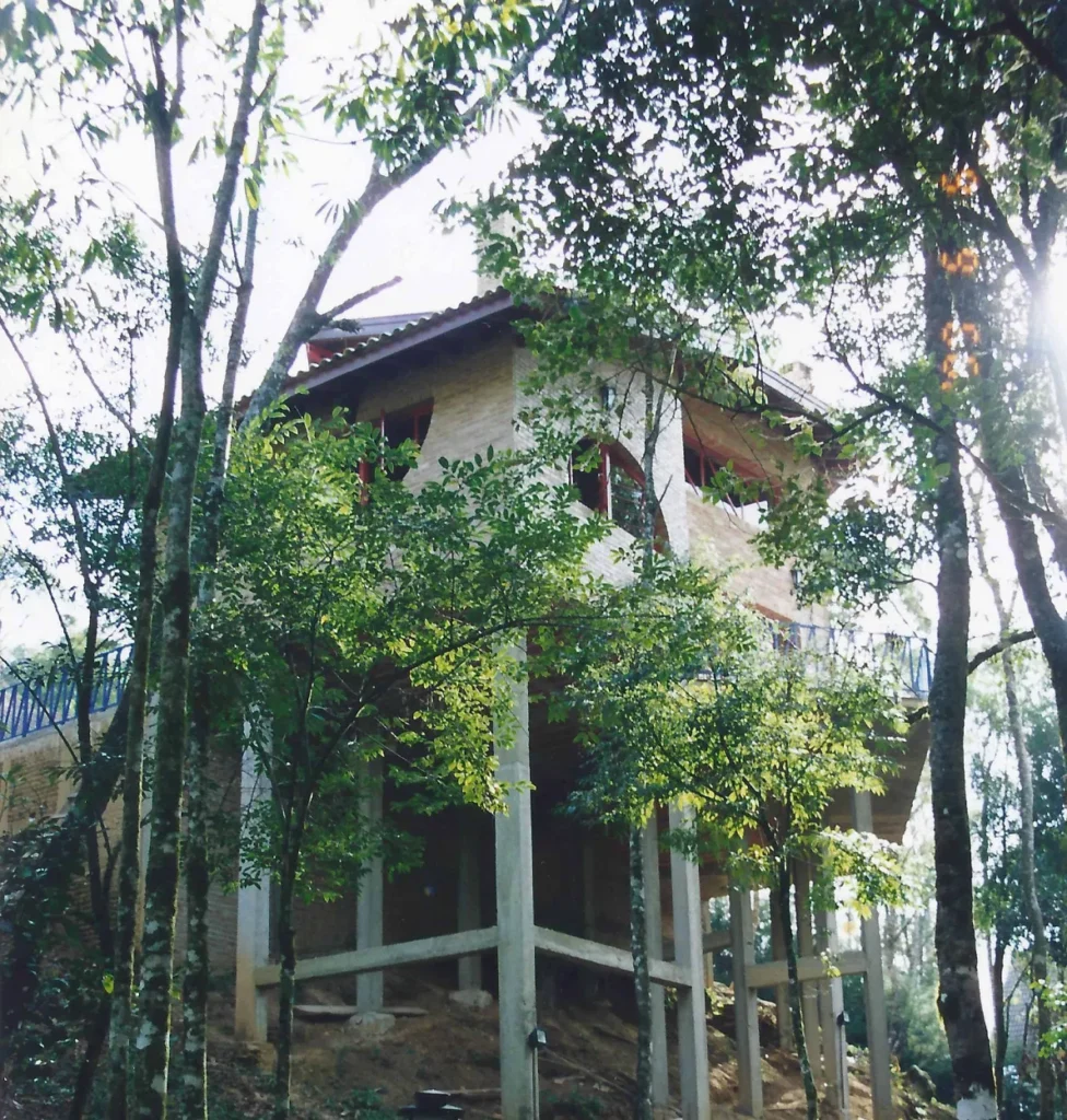 A topografia acidentada do terreno com vegetação exuberante na parte mais baixa, influenciou a escolha do local da residência, na cota superior do lote, com visibilidade de todo o vale. A casa conversando com as arvores.