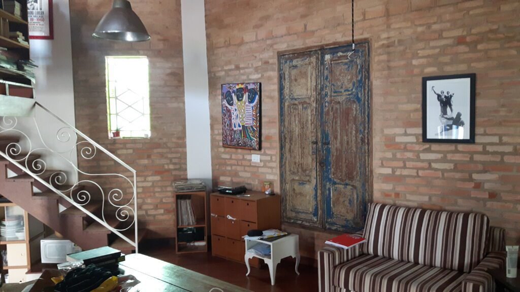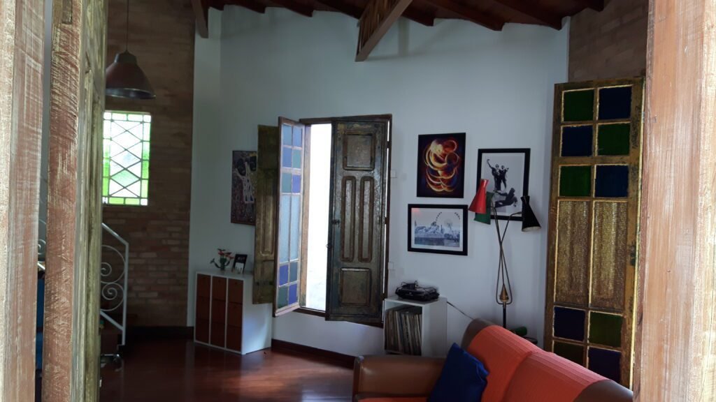 Foram ainda utilizados diversos materiais provenientes de demolição e reuso de forma geral, como assoalho, luminárias, portas e janelas.